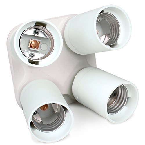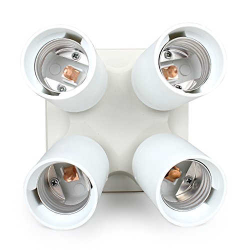 Amariver Flashpoint 4 Socket Adapter 4 in 1 Socket Adapter Holder Converter, Standard Light Bulbs Lamp Socket Splitter for Photo Studio Lighting, Work Shop, Garage Lighting and Others, White