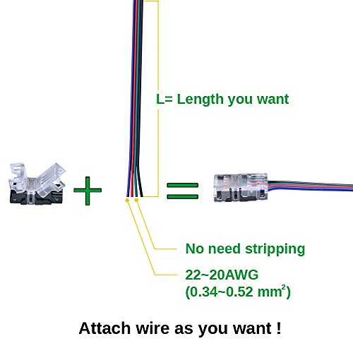 You will be no more limited by distance between strip light to Controller or dimmer. This connector allow you to cut any length wire according to project's actual requirement, then attach wire to connector easily without stripping insulation.