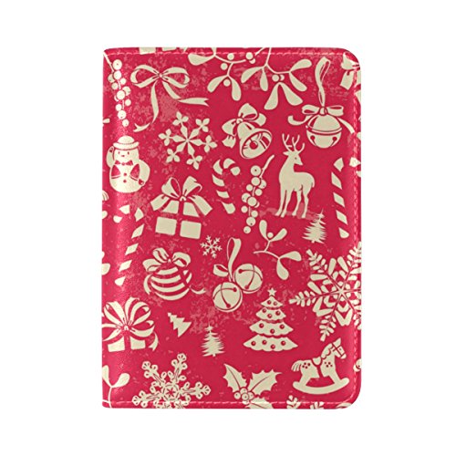 (ALAZA)/Accessories/Wallets, Money Key Organizers/DIRECT FROM USA/La Random Red Christmas Background Passport Holder Cover Leather Travel Passport Wallet Case