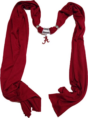 Product Description Show your school spirit by wearing this 100% polyester crimson scarf with a 1.5" licensed University of Alabama silver pendant. Jewelry can easily be removed for washing. 0