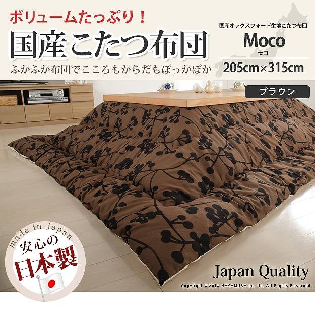商品について:クッションやカバーにも使われる綿100%の丈夫な国産オックスフォード生地を使用した日本製のこたつ布団です。国内工場で綿入れ・縫製をしたこだわりの一品☆ボリュームたっぷり!すみまでしっかり綿が入ったふっかふかのこたつ布団です。