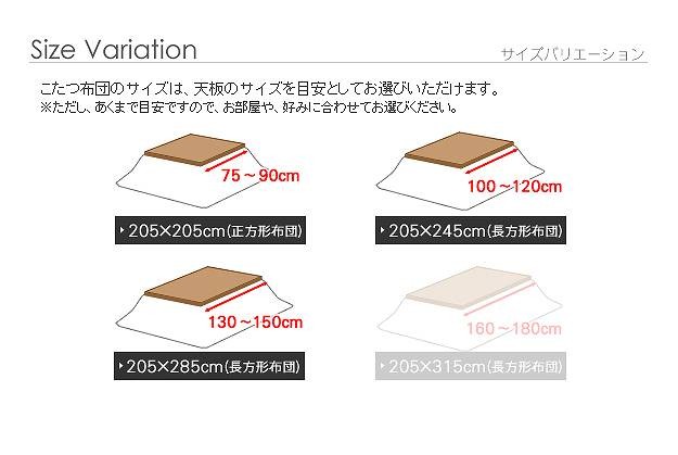 オススメこたつサイズ:75~90x160~180cm