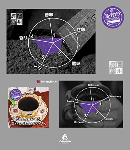 향,《고쿠》,향기,모든 요소가 완벽하게 조화.쟈마이카의블루마운틴 연봉의 표고800m~1200m이라고 하는 제한된 지역에서 생산된다,세계 손에 꼽히는 고급 커피.풍부한 향을 최대한으로 꺼내기 위해,보통 때 보다 약간 깊게 하게 로스트 하고 있습니다.