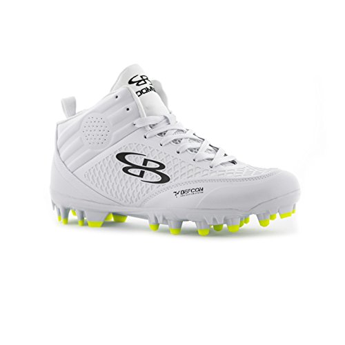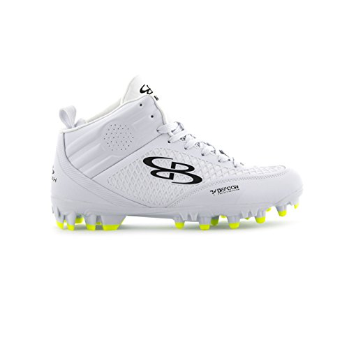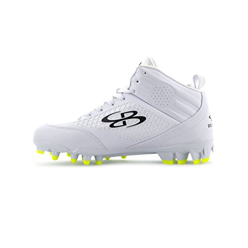 Studio : Boombah Publisher : Boombah Binding : Misc. Product Description Boombah Men's Baller Molded Mid Lacrosse or Football Cleats - Multiple Color Options - Multiple Sizes Our Baller Molded Mid Lacrosse or Football Cleats feature a KPU molded quarter mesh construction that keeps the foot snug to the outsole for secure high torsion maneuvering. This mesh also provides a protective membrane to keep the foot secure from injury. Key features include: - Mid collar construction utilizing cushioned channels for ankle support and impact protection. Perforated for moisture and heat release - High density TPU chassis construction in conjunction with the pivot ring cleat configuration provides explosive angular motion in any direction - Pebax shank ridges are co-molded through the heel and shank to provide chassis stability and motion control - Fits true to size. 10.5 oz. Mid cut