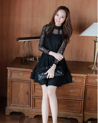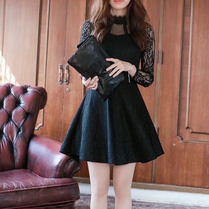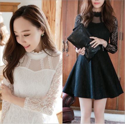 パーティードレス ミニ丈 ワンピース 総レース ハイネック ホワイト ブラック エレガント 上品 お呼ばれ drgz2549