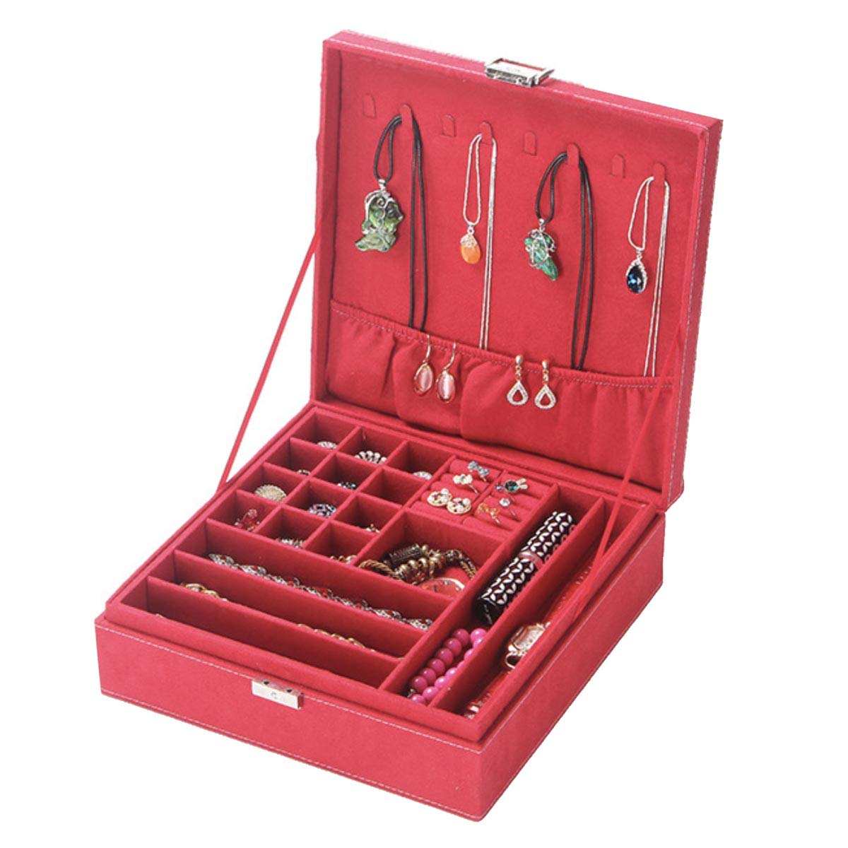 サイズは、縦26cm×横26cm×高さ8cmです。 指輪やピアス、ネックレス、ペンダント、アンクレットなどの保管に。 2段式なのでたくさん入ります。 オシャレなインテリアとしてもお使いください。 Made in Chinaです。