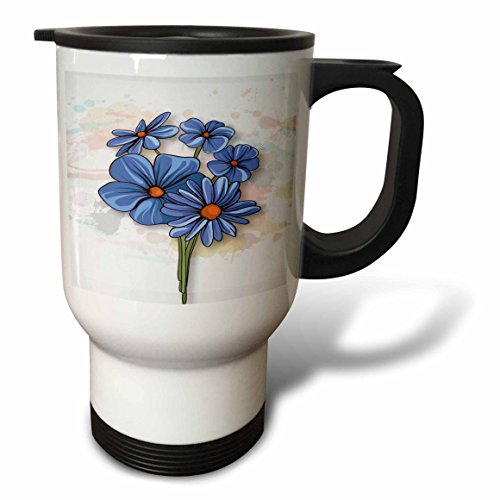 3dRose Pretty Blue Flowers with Orange Centers Illustrations Travel Mug, Stainless Steel, 14-Ounce