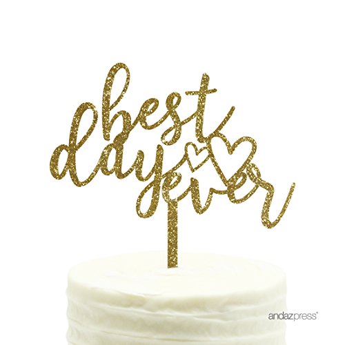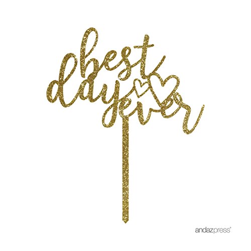 Andaz Press Wedding Acrylic Cake Toppers, Gold Glitter, Best Day Ever, 1-Pack