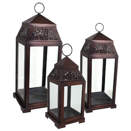 -. Title : Essential Décor Entrada Collection 3-Piece Lantern Set, 27 by 17 by 11-Inch, Bronze