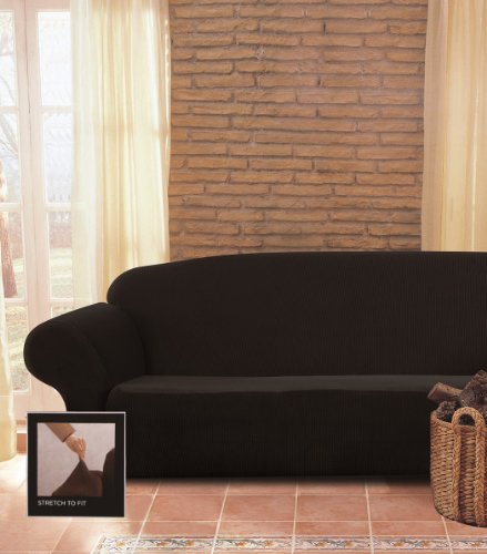 -. Title : Chezmoi Collection Villa Black Ribbed Corduroy 4-Way Stretch Slipcover Sofa