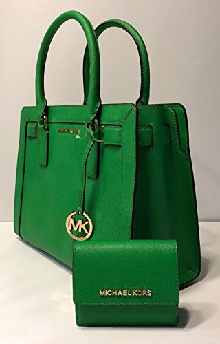 MICHAEL Michael Kors Dillon TZ MD EW Satchel bundled with Michael Kors Jet Set Travel Card Case ID Key Holder Wallet (Palm)