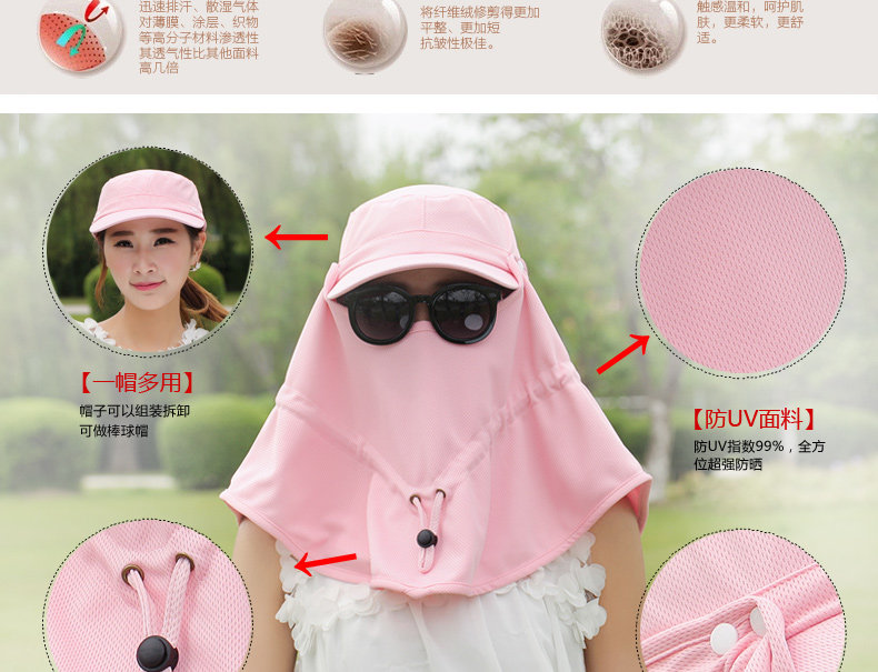 遮脸遮阳帽360防晒帽太阳帽女夏天男士户外棒球护脖骑车防紫外线