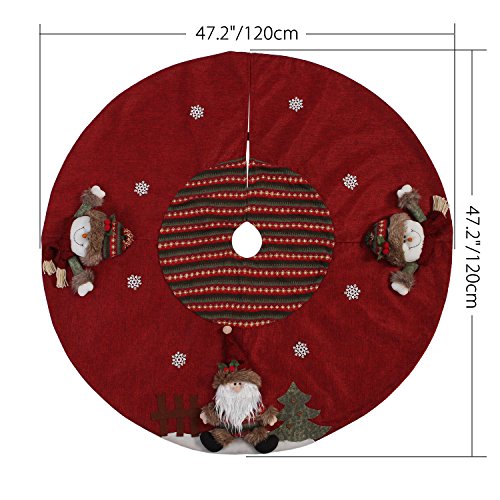 AMPLE SIZE: 47.2"/120cm (Dia.); The large size tree skirt is perfect for decorating your tree's surrounding area. (Recommended Tree's Height: 2 - 7 ft)