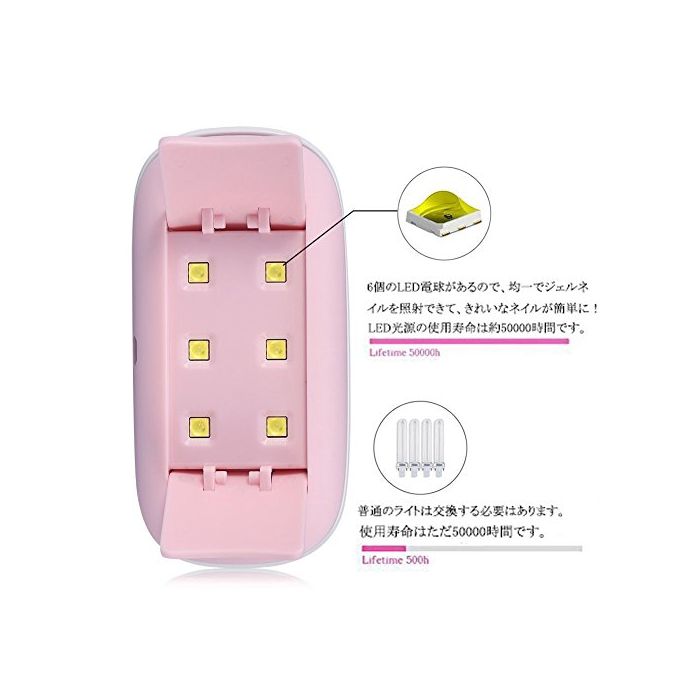 【6개의 LED전구】UV레진,UV경화 수지,UV접착제에 적용하고, 빠르게 건조 시키는 것 를 할 수 있습니다.6개의 LED전구가 어느(있는) 때문에,사각이 없습니다.균일에서 젤 네일을 조사 만들고, 예쁜 네일이 간단하게 완성합니다.네일 램프의 LED광원의 사용 수명은 약50000시간입니다.종래품보다(부터)도 장시간이 사용하는 일이 가능 입니다.