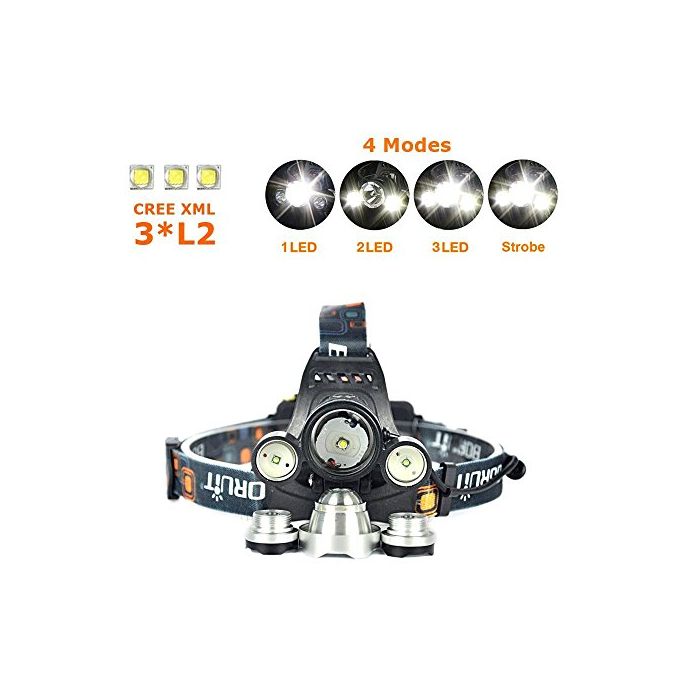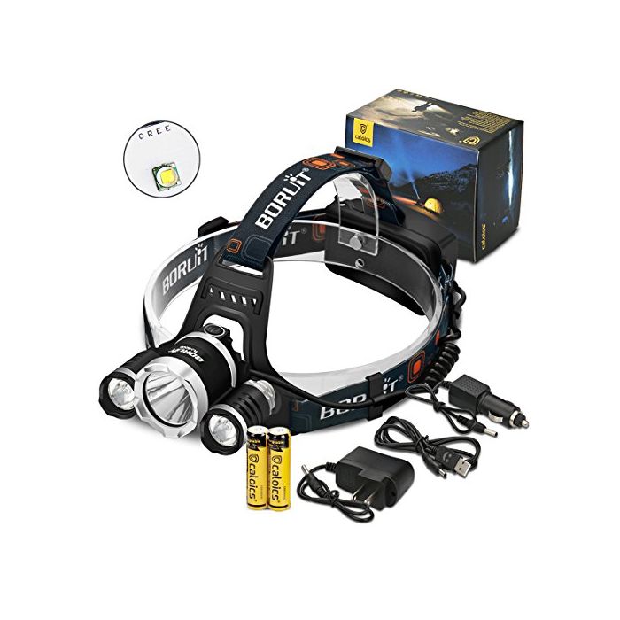 Caloics 초높음 휘도LED헤드라이트Boruit RJ-5000 3등 3x CREE XM-L L2 LED 초강력5800LM 충전식 IPX65 방수 사양 헤드라이트 각도 조절 가능 등산야의 작