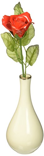 Cosmos 10000 Fine Porcelain Ivory Vase with Red Rose, 10-Inch