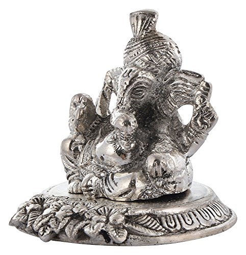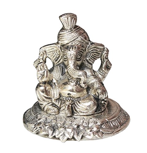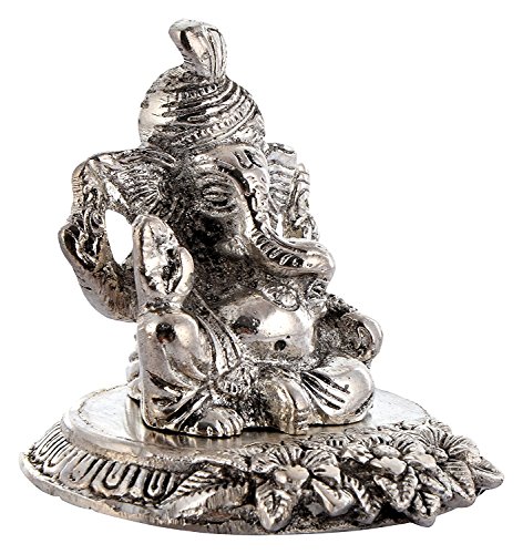 Crafticia Craft Rajasthani Handicraft Oxidised Metal Silver Riligious Sitting Ganesha With Turban Spiritual Gift Item Showpiece Silver