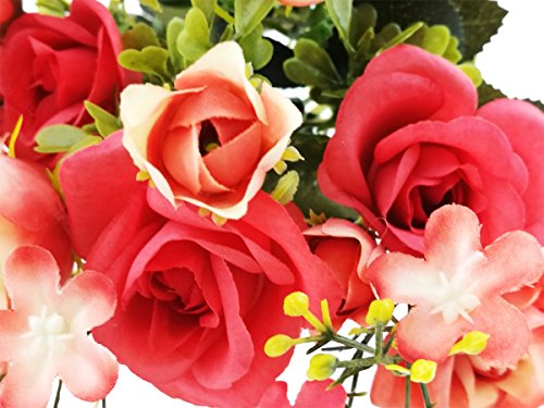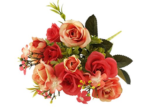 Artificial Faux Flower Lifelike Rose Bouquet For Wedding Bridal Party Home Decoration (Red)