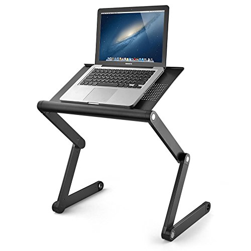 Flexzion Laptop Desk Stand Portable Adjustable Vented Notebook Computer Macbook Tablet Pad Book Table Bed Tray Folding with Angle Legs Aluminium Alloy Up to 17"