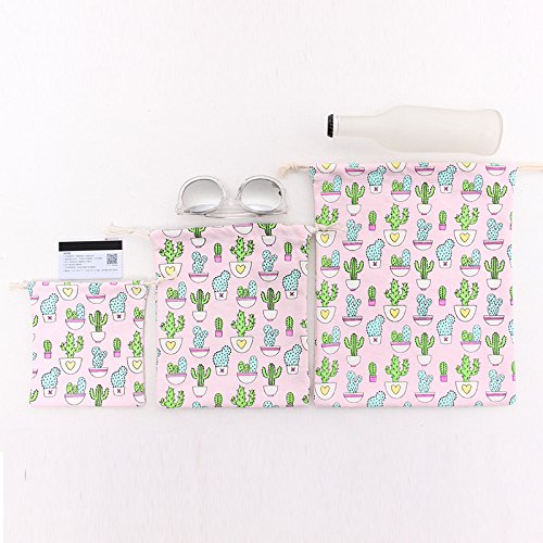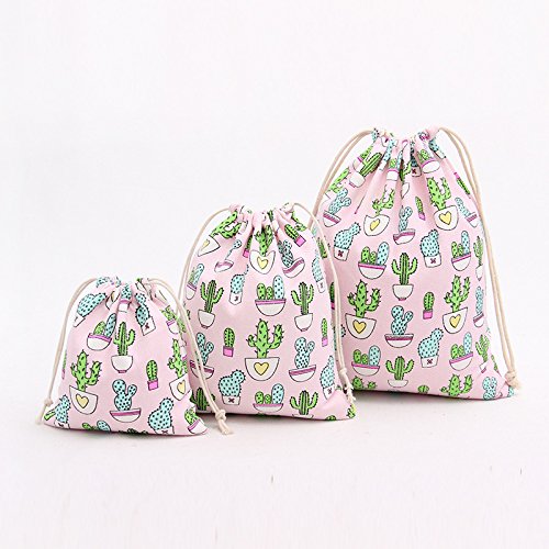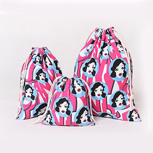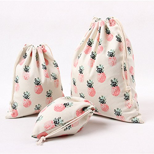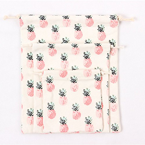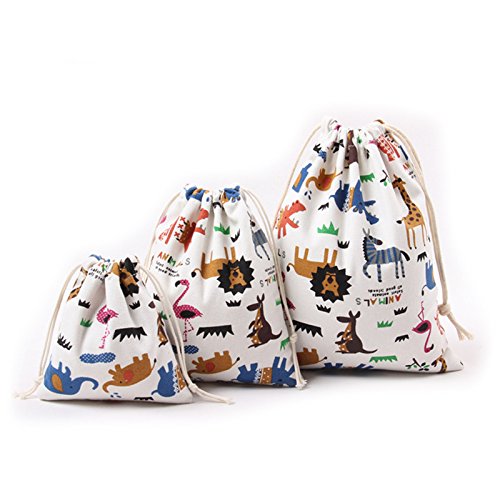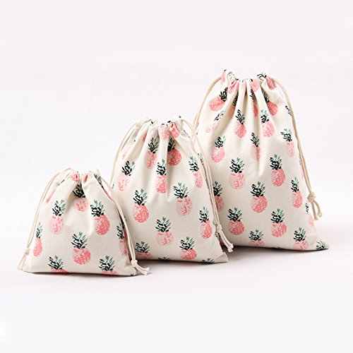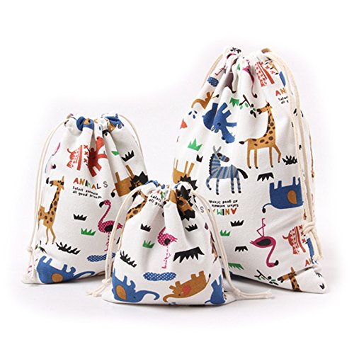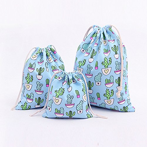 | Lacheln Canvas Reusable Storage Bags Organization Drawstring Pouches 3PCS (Small Medium Large) |