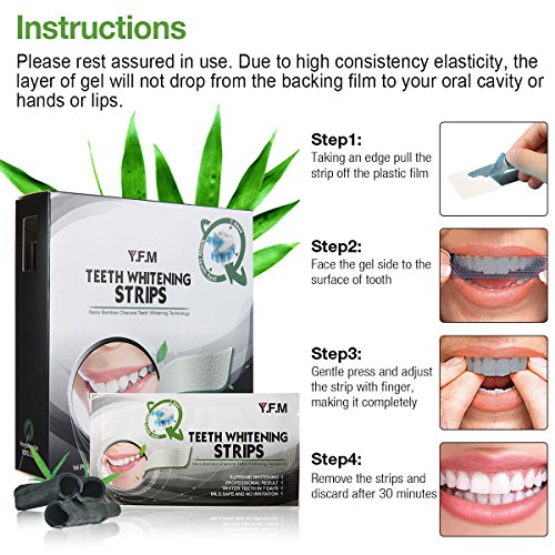 CONVENIENCE TO CARRY - Y.F.M teeth whitening strips are individually packaged, which provide you a professional teeth whitening at home as well as traveling