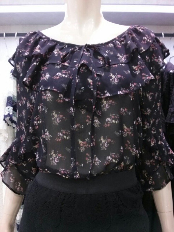 네크라인과 소매 프릴디테일로 여리여리한 스타일의 블라우스에요