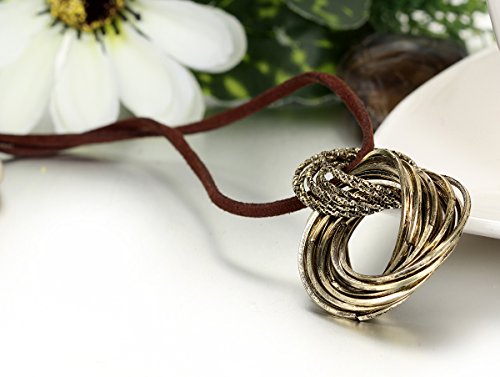 -. Title : JewelryWe ジュエリー ファッション アクセサリー レディース ネックレス,チョーカー, チェーン(レザー 本革 長さは調節可) と ペンダント トップ ヘッド コンビ セット, 超アンティーク風 レトロ 2連 リング, 合金, カラー:ブラウン; シルバー(銀);[ギフトバッグを提供]