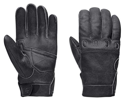 Studio : Harley-Davidson Publisher : Harley-Davidson Binding : Apparel Product Description Harley-Davidson® Men's Revolve Distressed Full-Finger Leather Gloves, 97391-17VM. Cowhide leather with tricot lining on the palm. Ergonomic thumb and pre-curved fingers. Knuckle cut-outs and perforated fourchettes. Comfort Seams and adjustable closure. Distressed finish with embroidered embossed graphics. 97391-17VM 0