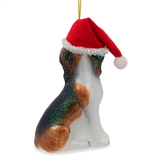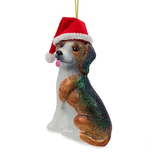 4" Beagle Dog with Santa Hat Blown Glass Christmas Ornament