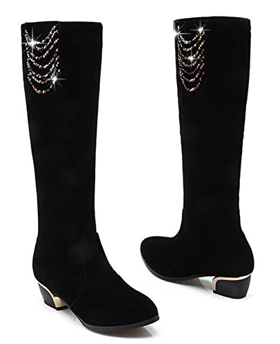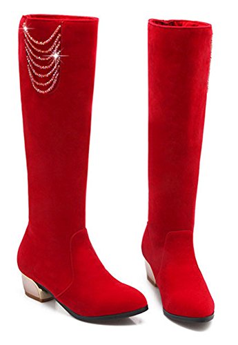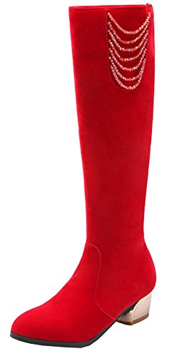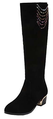 Binding : Apparel Product Description This pair of shoes is for women, girls, young ladies and brides. You will look sexy and elegant when wearing them. The heels measure 1.8 inches. You will look slimmer and slender in their block heels. This pair of shoes features knee high and solid waterproof upper. You will look stylish in their bead pendant. The design of round toe and human-made materials will make you more sexy. The pull on is easy for get on and off. You could wear them with jeans, dress and skirts. The sole is made of good rubber. It's really lovely and comfortable. 0