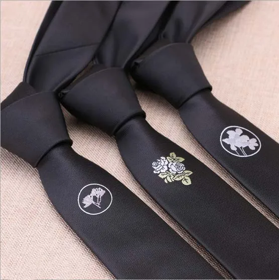 | [해외]5 센치메터 남성 패션 Disi 블랙 넥타이 꽃 로고 캐주얼 성격 스키니 슬림 파티 웨딩 넥타이 |