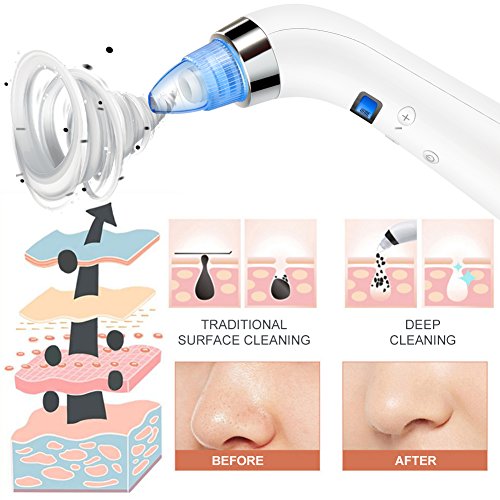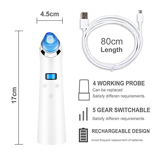 - Beauty Function: Blackhead, whitehead, comedo, coarse pore, dirty nose, dark skin, crow's feet all these troubles get away, four replacement suction heads, deal with different skin problems, give you beauty and confidence and without hurting your skin.