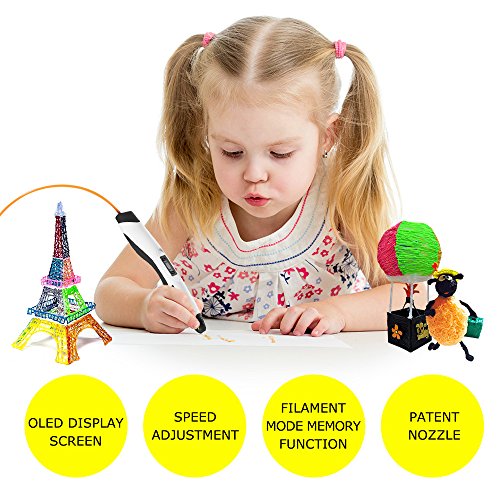 - ★ ADJUSTABLE FEED - lets you regulate speed & flow for optimal control of material while you're drawing with our 3D printing pen. PACKAGE INCLUDED - 1 x 3d printing pen, 1 x User manual, 1 x USB cable, 2 x finger cot (Random color), 2 x 1.75mm filament (Random color)