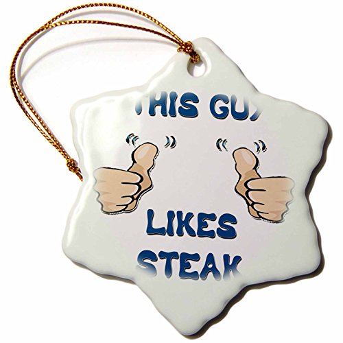 3dRose orn_150477_1 This Guy Likes Steak Snowflake Porcelain Ornament, 3-Inch