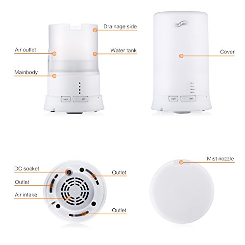 Housmile Essential Oil Diffuser 7 colors - 100 ml Portable Ultrasonic Cool Mist Aroma Humidifier with Smart Sleep, Adjustable Mist mode and Colored LED Changing Function