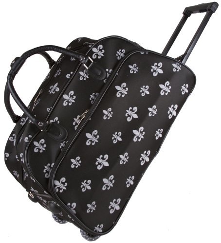 -. Title : World Traveler Black and Silver Fleur de Lis Rolling Wheeled Duffle Bag 21-inch