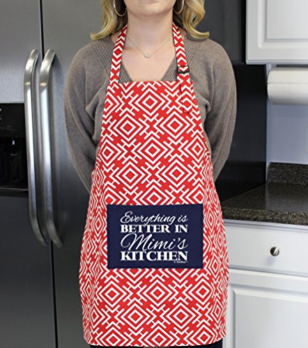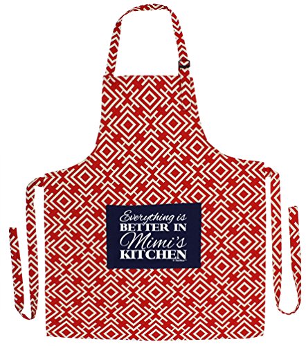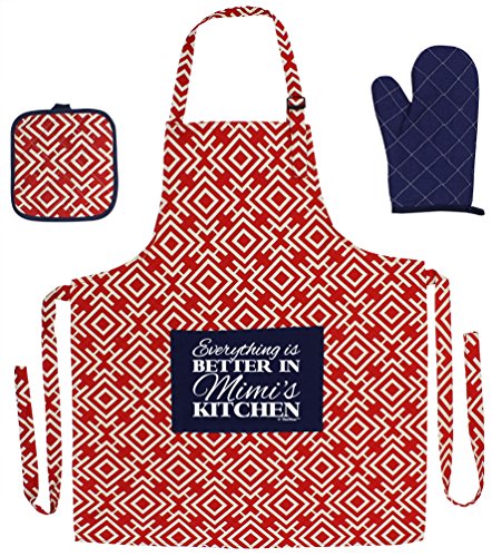 Christmas Gift for Mimi Everything is Better in Mimi's Kitchen Funny Aprons 3-piece Cooking Apron Set with Oven Mitt and Pot Holder Funny Apron Red Greek Square
