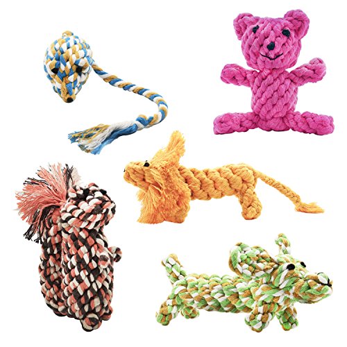 Dog Rope Toys,5 Pack Puppy Chew Animal Design Cotton Rope Toys Set For Small to Medium Dogs Clean Teeth, Chewing, Play, Training