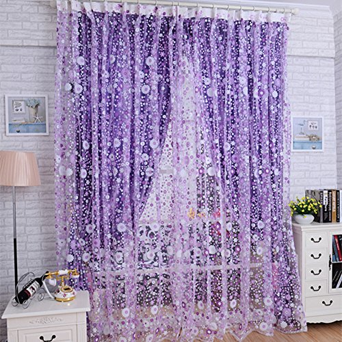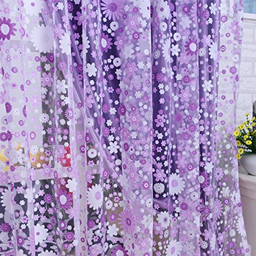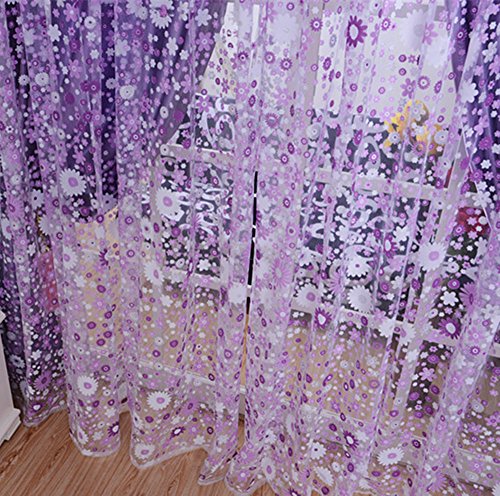 Yueton 1 Piece 78 inch x 39 inch Beautiful Floral Daisy Pattern Sheer Window Elegance Curtains Decorative Drape Window Panels (Purple)