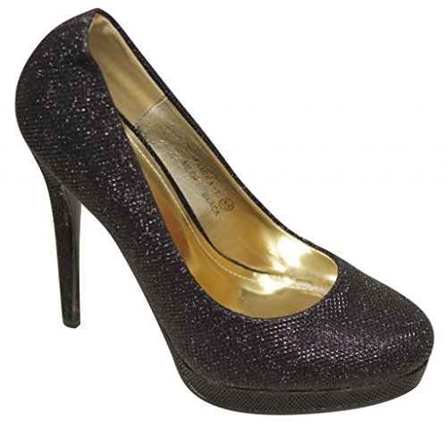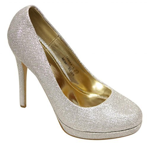 Bella Marie Tamika-1 Women's classic occupational glitter leather platform stiletto heels pump
