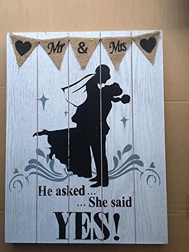 He Asked, She Said Yes sign wall hanging mr and mrs burlap banner