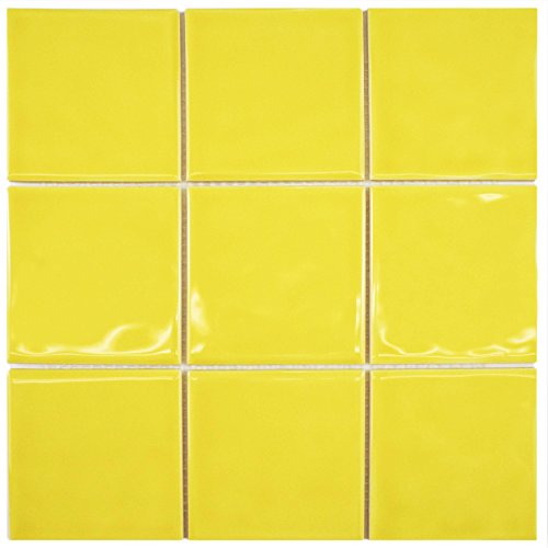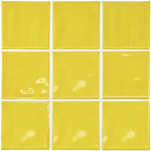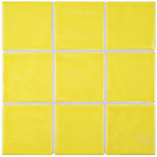SomerTile WRC4TWYL Torsio Square Ceramic Wall Tile, 3.75" x 3.75", Lemon Yellow