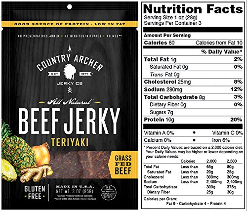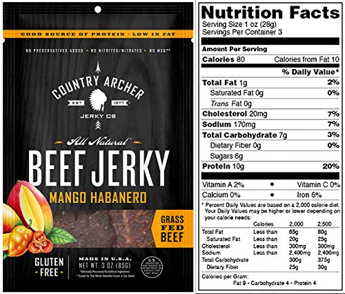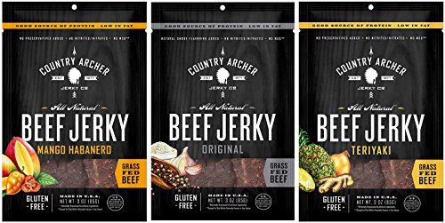 Country Archer All Natural Beef Jerky Variety Pack of 3 Teriyaki Mango Habanero Original Grass Fed Beef