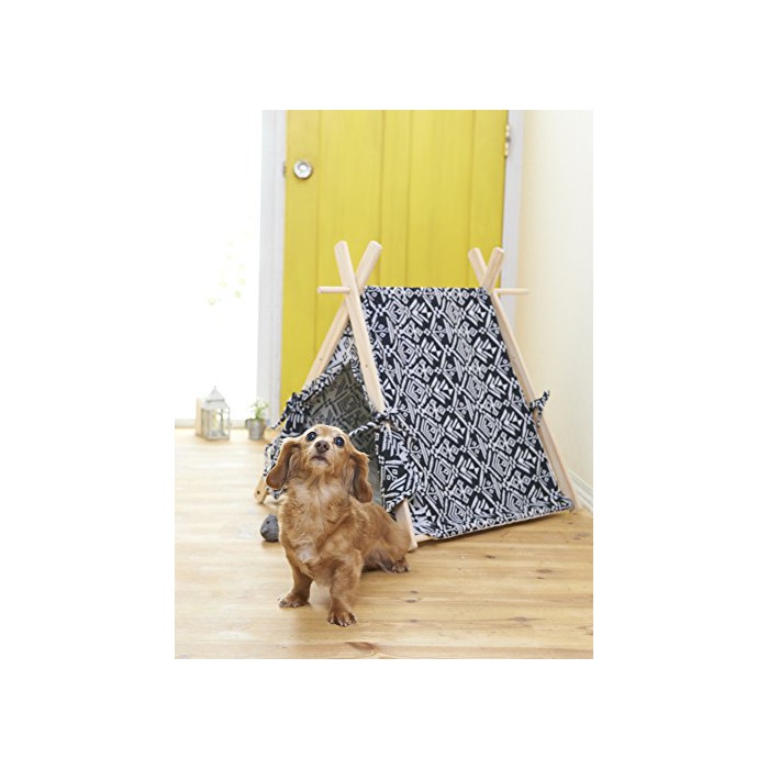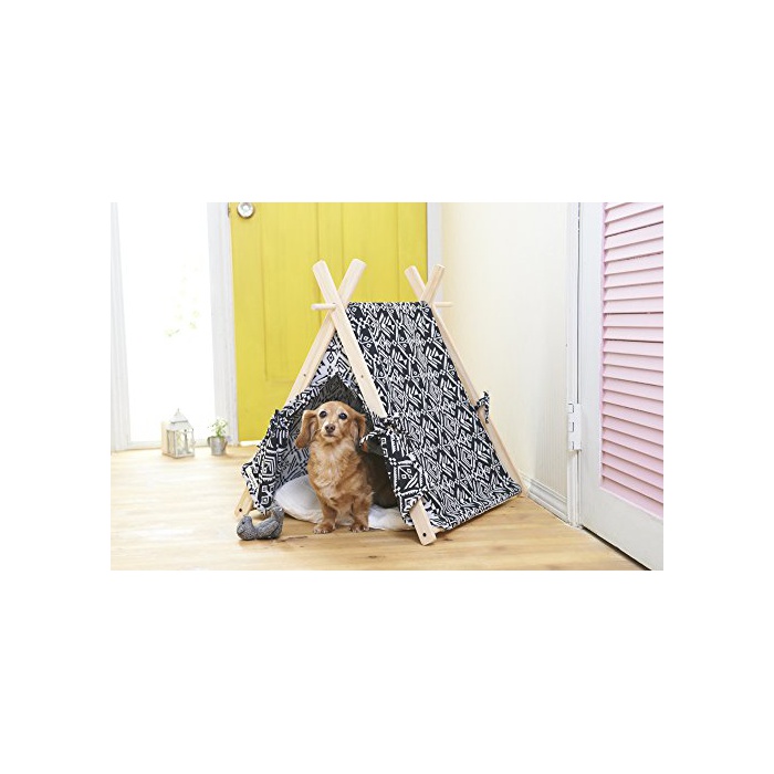 목재와 천이 기분이 상쾌한 텐트풍 개집입니다
