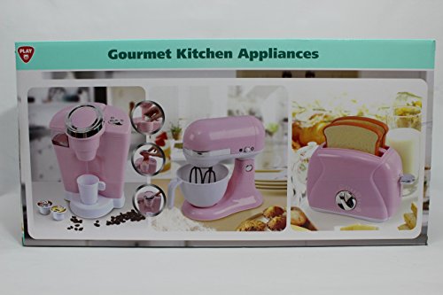 PLAYGO PRETEND PLAY GOURMET KITCHEN APPLIANCE SET - SINGLE SERVE COFFEE MAKER, MIXER & TOASTER, 3 PIECE, PINK