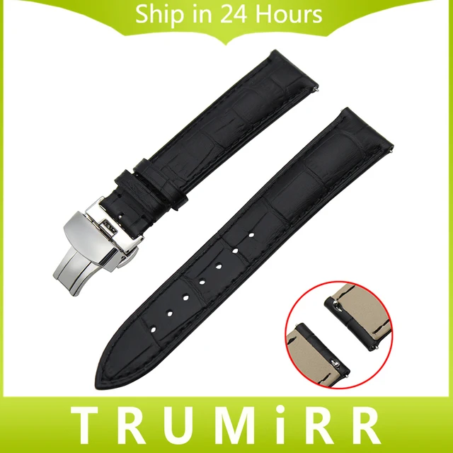 | [해외] 18 미리메터 20 미리메터 22 미리메터 빠른 릴리스 손목 유니버설 정품 가죽 시계 밴드 스테인레스 스틸 나비 걸쇠 스트랩 손목 팔찌 |