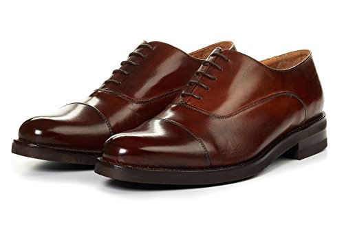 -. Feature : Runs full size large (order full size down from regular US dress shoe size). For example, if you normally wear a size US 10 dress shoe, order a size 9. Alternatively, order one and a half sizes below your Brannock device measurement. For example, if you measure a 10 on the Brannock, order a size 8.5 / Full-grain Italian calfskin leather upper, matching leather soles and leather lining / Blake construction for exceptional comfort and sleek aesthetic. Can be resoled as necessary / Painted by hand for a stunning patina / Handmade in Naples, Italy