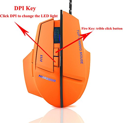 -. Feature : Perfectly designed gaming mouse to fit snugly under your palm,Ergonomic design,internally and externally,to create the ultimate game concept,long-term use without fatigue.Comparable to other logitech mouse/apple wired mouse / High precision control with 4 DPI settings: 800 / 1200 / 1600 / 2400 DPI.Each DPI mode matches one color LED Light.4 Colors LED Light with adjustable constant single-light modes. / Ergonomic Wired optical mice design.Intelligent connectivity, no need to code, plug & play (No need CD driver).Metal bottom more stable when mouse moving,style more fashion as well. / Fire Key: triple click botton before the DPI button,more convenient for you to get a triple click, help you to get a fast speed than other players in the game.Built-in 8 weights, can be adjusted according to your habit. / Compatible system:Windows 98/ 2000/ ME/ NT / XP/ win 7/ win 8/ win 10/ Mac OS and other OS,plug & play.