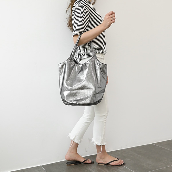 은은한 펄감이 도는 쇼퍼백을 소개해드려요 가볍고 부드러운 소재로 펄이 들어가 있어도 빳빳한 느낌이 전혀 없어요 넉넉한 크기에 원형모양의 바닥으로 모양을 잡아주어 스타일은 물론이며 수납력까지 훌륭한 아이템이에요 실버, 블랙, 골드, 블루컬러가 준비되어 있으며 4가지 모두 은은한 펄감 섞인 컬러가 너무 예뻐요 :) 데일리로 가볍게 스타일링 한 날에 함께 연출해줘도 잘어울려서 매일매일 들고 싶어지는 가방! 상세페이지 확인 후 굿초이스 해주세요         | COLOR | 실버 / 블랙 / 골드 / 블루 | | 제품 색상은 모니터에 따라 실제 색상과 차이가 있을 수 있습니다. | | | | FABRIC | 합성피혁 | | | | PRODUCT ION | 제조국 / 중국 | | 품질보증기준 / 소비자분쟁 해결기준에 따름 | | A/S 책임자 및 고객센터 / 감성가방 | | | | SIZE INFO | 사이즈는 측정 방법에 따라 1~2cm의 차이가 있을 수 있습니다. | | 스트랩 길이는 연결 고리를 제외한 길이이며, 최대 길이입니다. | | (단위:cm, g) | | 가로 길이 | 세로 길이 | 너비 | 손잡이 높이 | 스트랩 길이 | 무게 | | 41 | 35 | 18 | 19 | - | 370 |  |