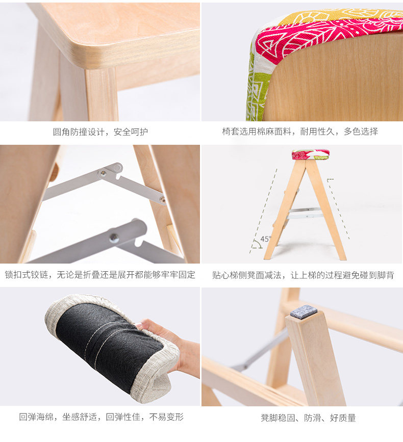 简域实木创意折叠凳简约折叠梯凳厨房凳便携小凳子折叠家用板凳